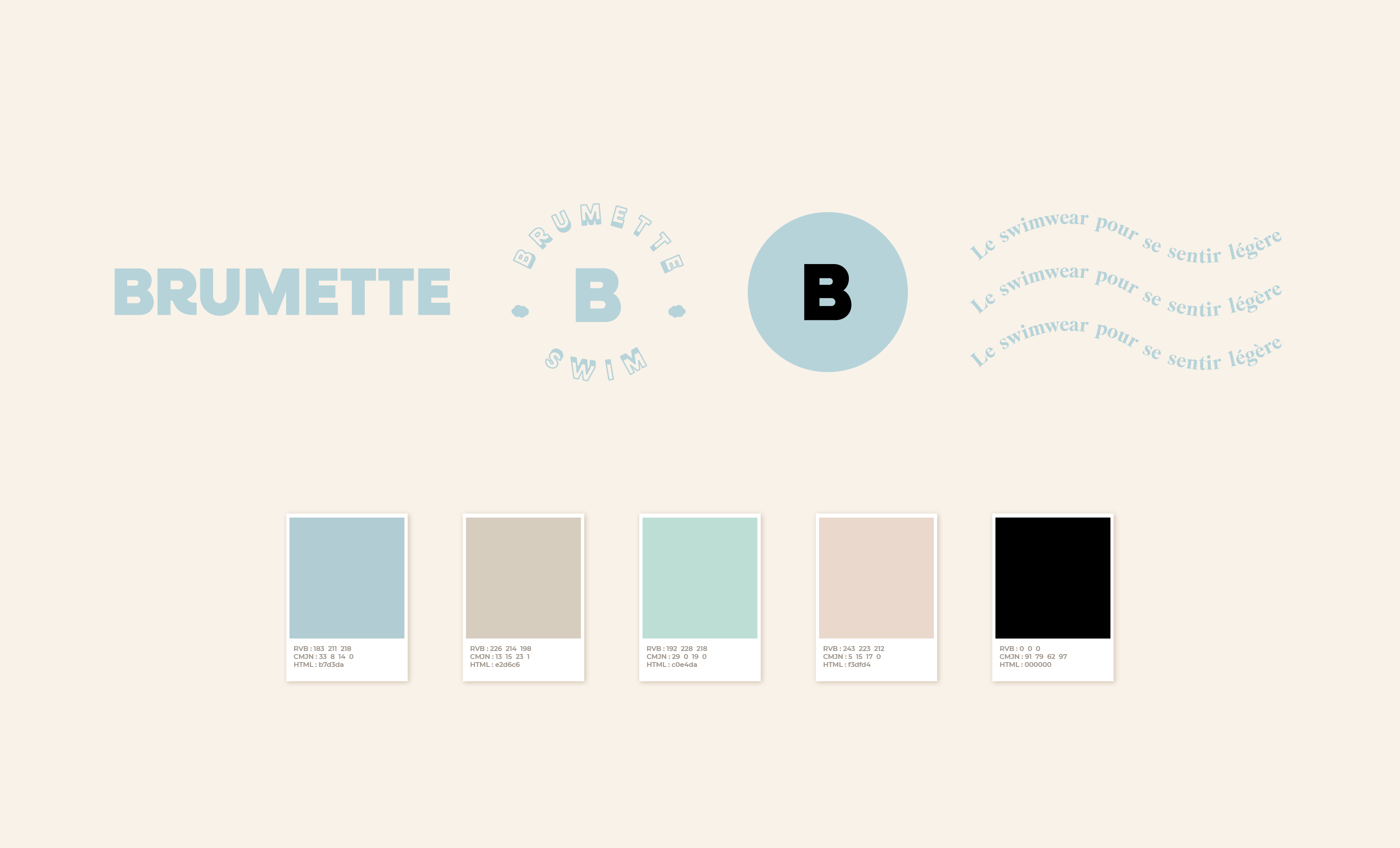 Brumette est une marque dédiée au bien-être des femmes, créée pour rendre la période des règles plus douce et libérée grâce à des maillots de bain menstruels fiables et confortables. Son univers se veut léger, accessible et rassurant, à l’image de la sensation d’aisance que la marque souhaite offrir. Pour traduire cette vision, j’ai conçu une identité visuelle articulée autour de teintes pastel, de formes douces et d’un vocabulaire graphique qui évoque la légèreté, l’intimité et la sérénité. L’objectif : créer un univers moderne et bienveillant, dans lequel chaque femme peut se sentir à l’aise et en confiance.